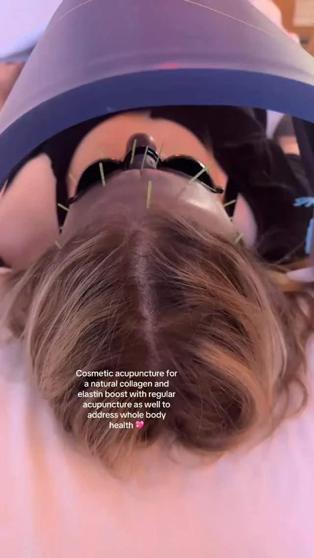 We offer both cosmetic acupuncture AND microneedling as well as Celluma LED red light therapy in order to minimize fine lines, enlarged pores, sagging skin, dark spots, acne scars, etc. Facial acupuncture (Cosmetic acupuncture) and microneedling work by stimulating collagen and elastin production.